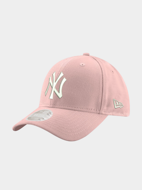 The New York Yankees 9FORTY Adjustable Cap in pink by New Era features the iconic Yankees logo embroidered on the front.
