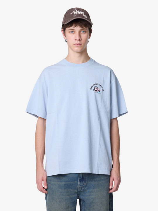 The Blood Hound Tee by Weekend Cartel is a relaxed fit t-shirt with a crew neck and short sleeves. It features a cartoon-style dog graphic across the back and a matching chest print.