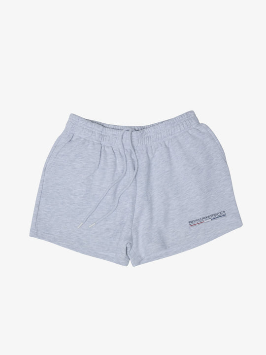 The American Headwear And Apparel Classic Sweatshorts by WHSC are comfortable, relaxed-fit shorts made from a soft fleece-back material. They feature an elasticated waistband with an adjustable drawcord and include side pockets and a back patch pocket. A small logo graphic is printed near the hem.