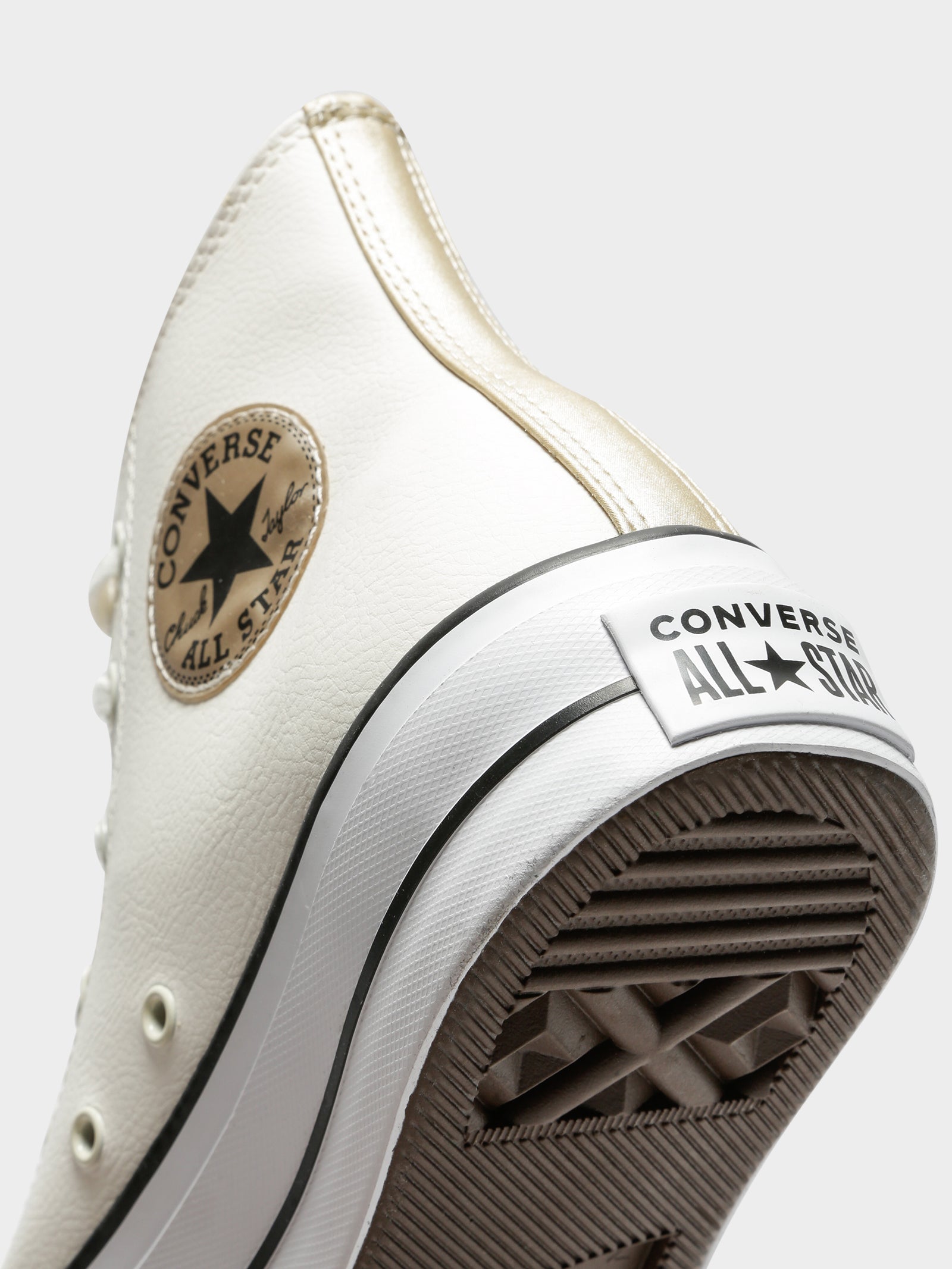Fit true to size to normal Converse Chuck Taylors. Love the off white leather and the gold detailing. At a great sale price too!