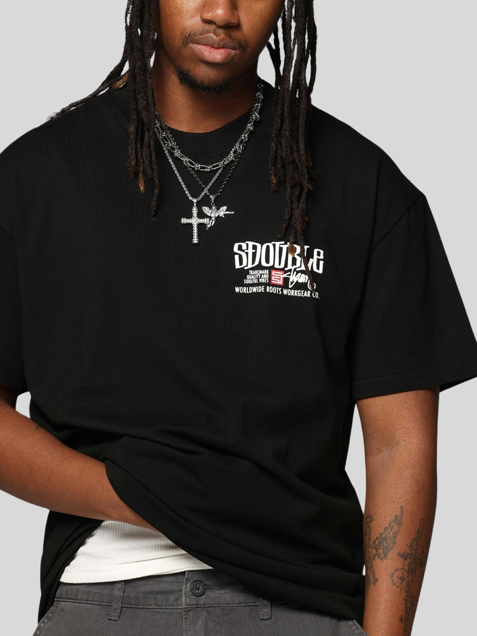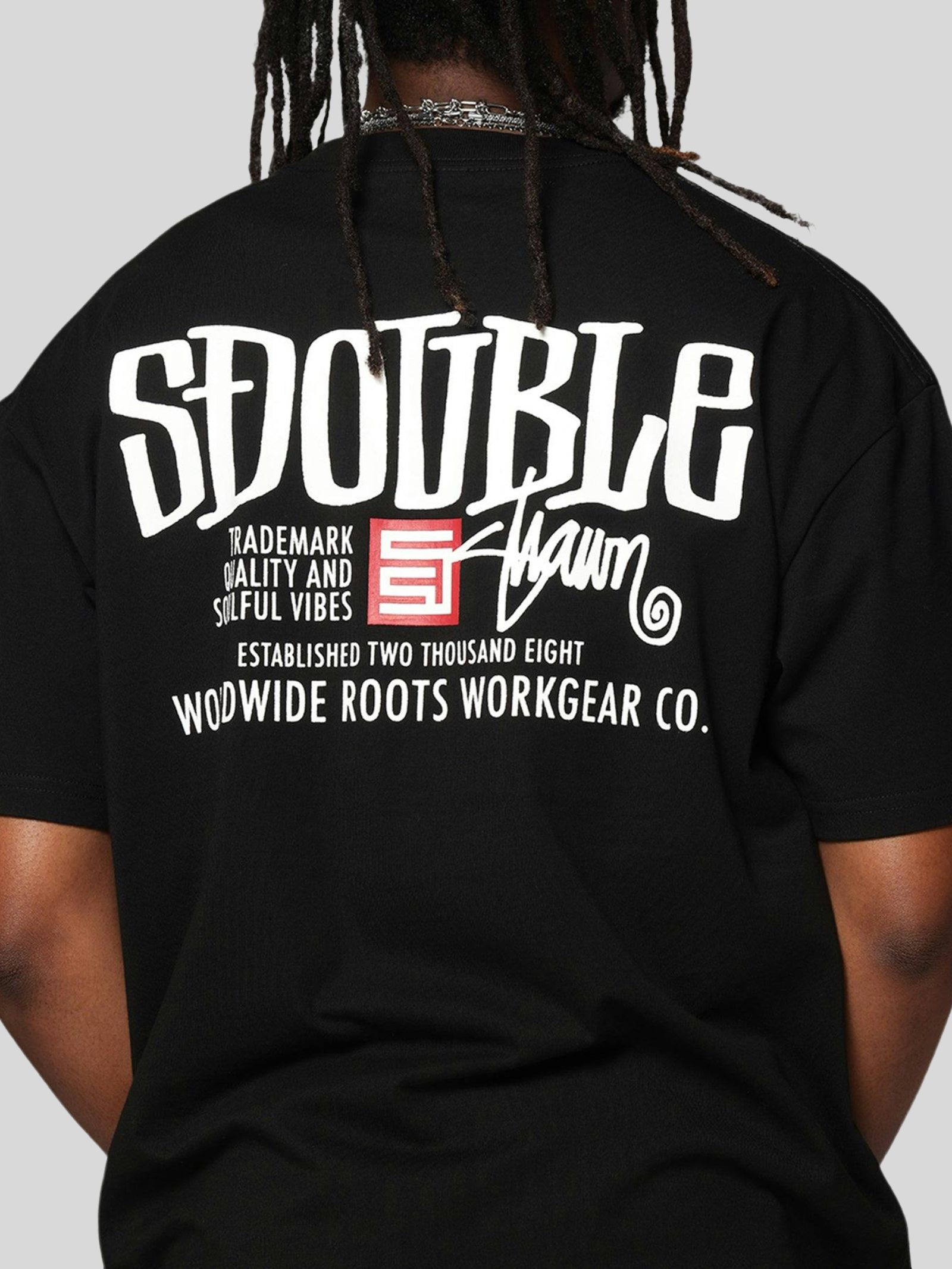 The Workgear SS Tee in Black by S-Double is crafted from premium heavyweight cotton. This short-sleeve tee offers a standout graphic on the chest and back and a ribbed crew neckline.