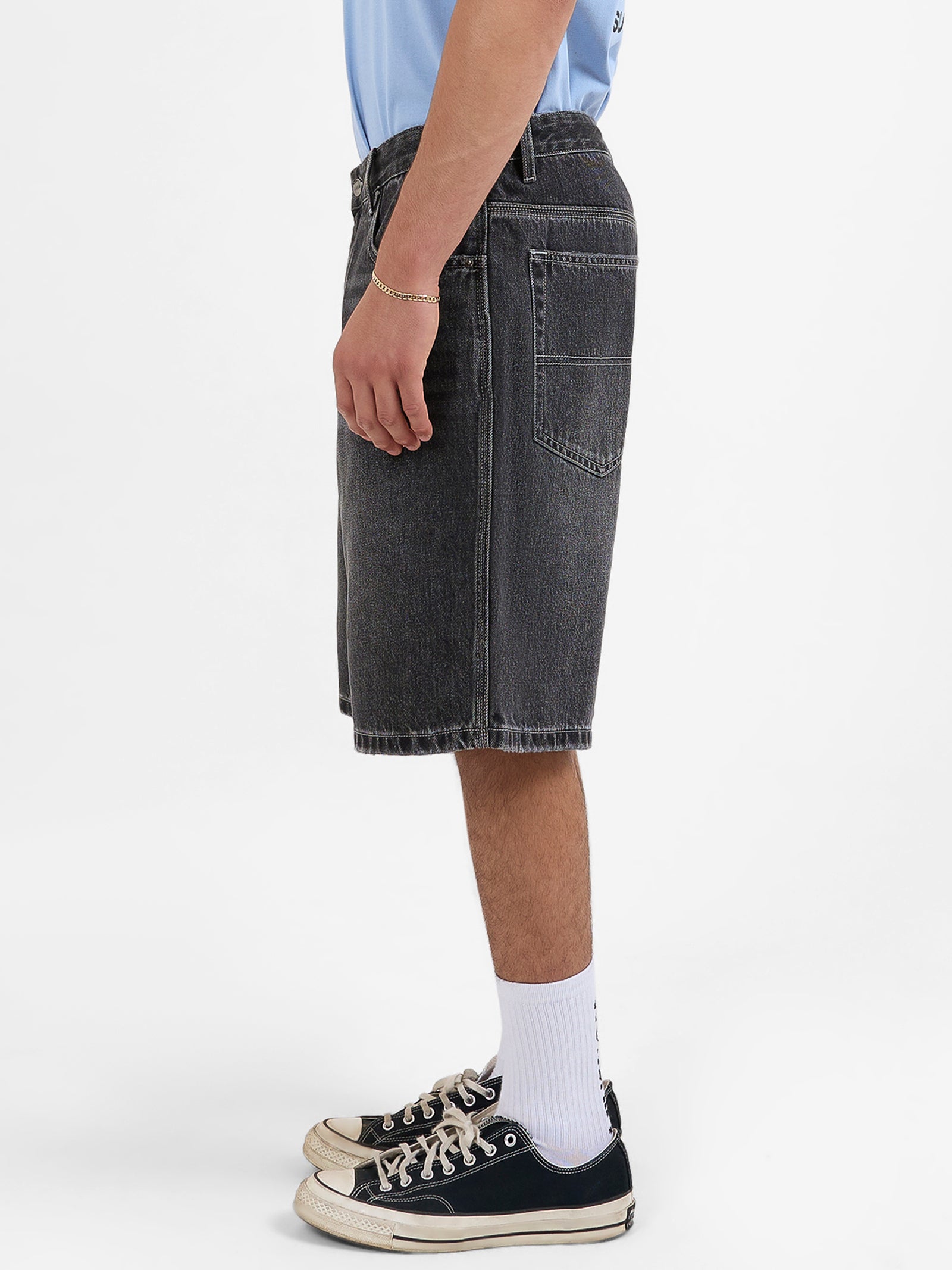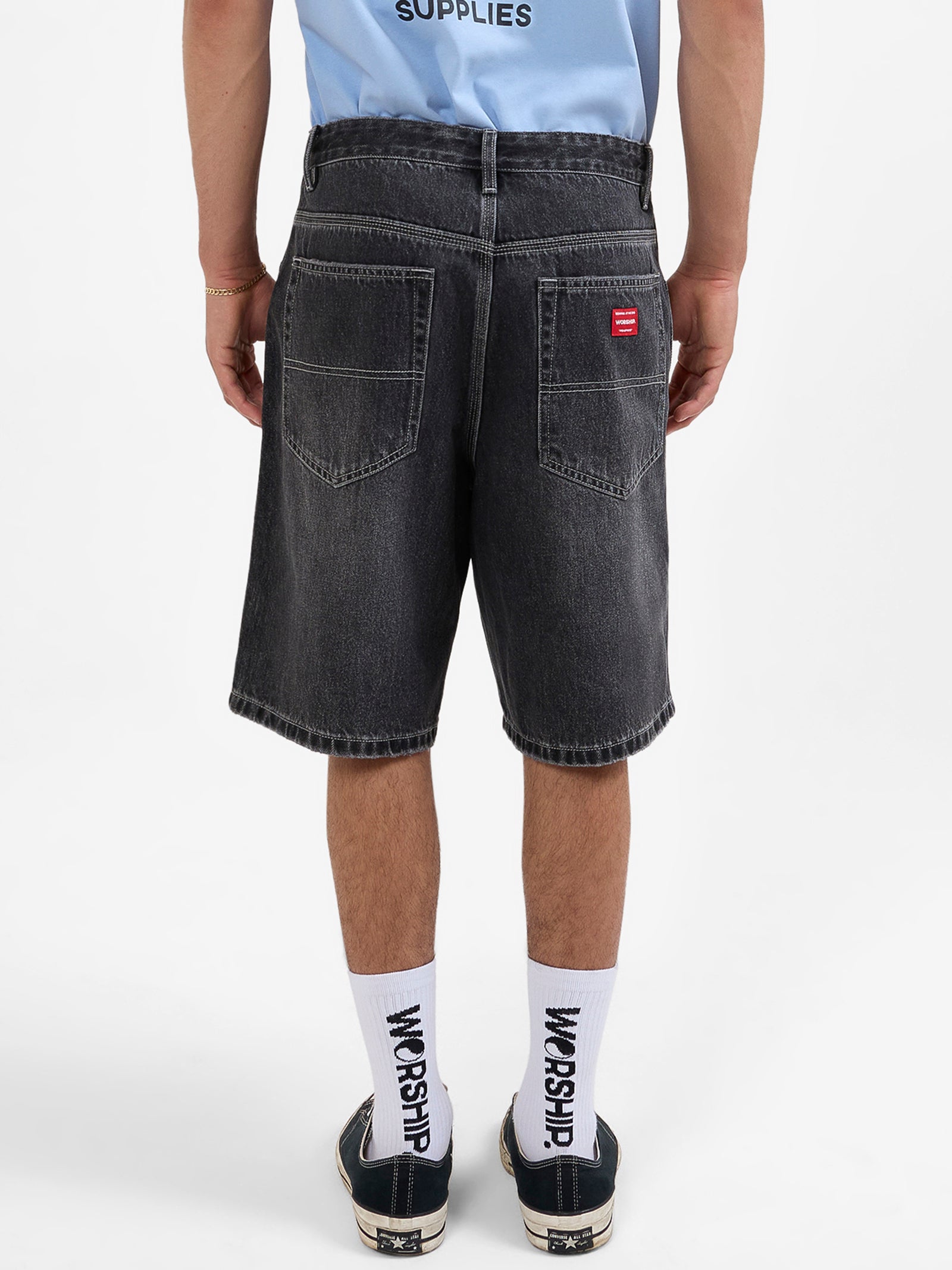 Featuring a loose, baggy fit that extends over the knees, these Jeanshorts offer a modern take on the beloved Jorts. The button fly and belt loops provide functional details, while the logo patch on the back adds a stamp of Worship authenticity. The Big Dawg Jeanshort combines practical elements with Worship’s distinctive flair.