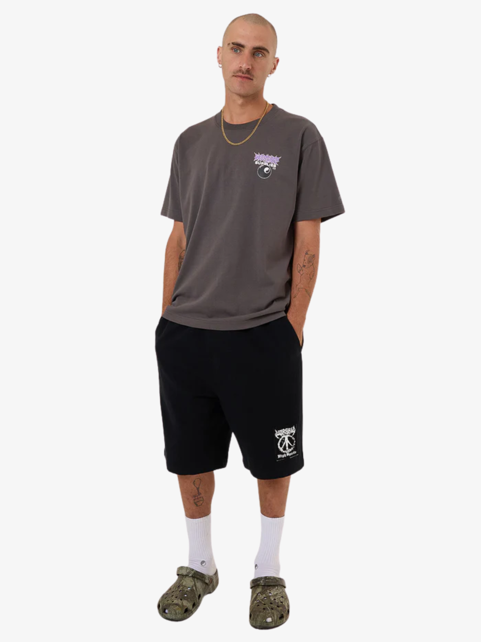 The Long Time Tee in Worn Black by Worship is made from premium cotton jersey. This tee features a relaxed fit, a subtle chest print balances the bold cracked graphic on the back.