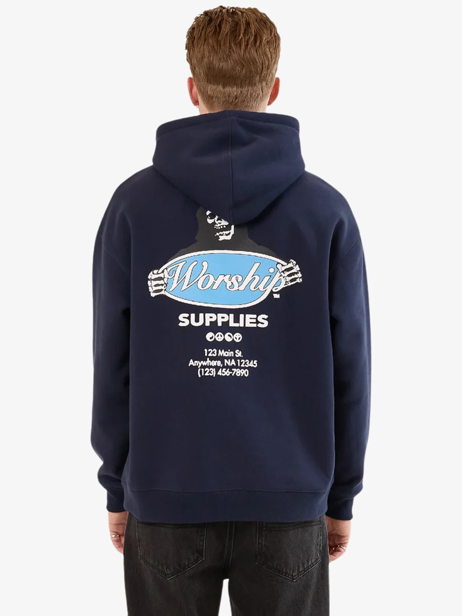 Worship is constructed from heavyweight 310gsm duck canvas with a soft cotton poplin lining. This jacket features a convenient zip front, a pointed collar, and a small embroidered patch on the chest.