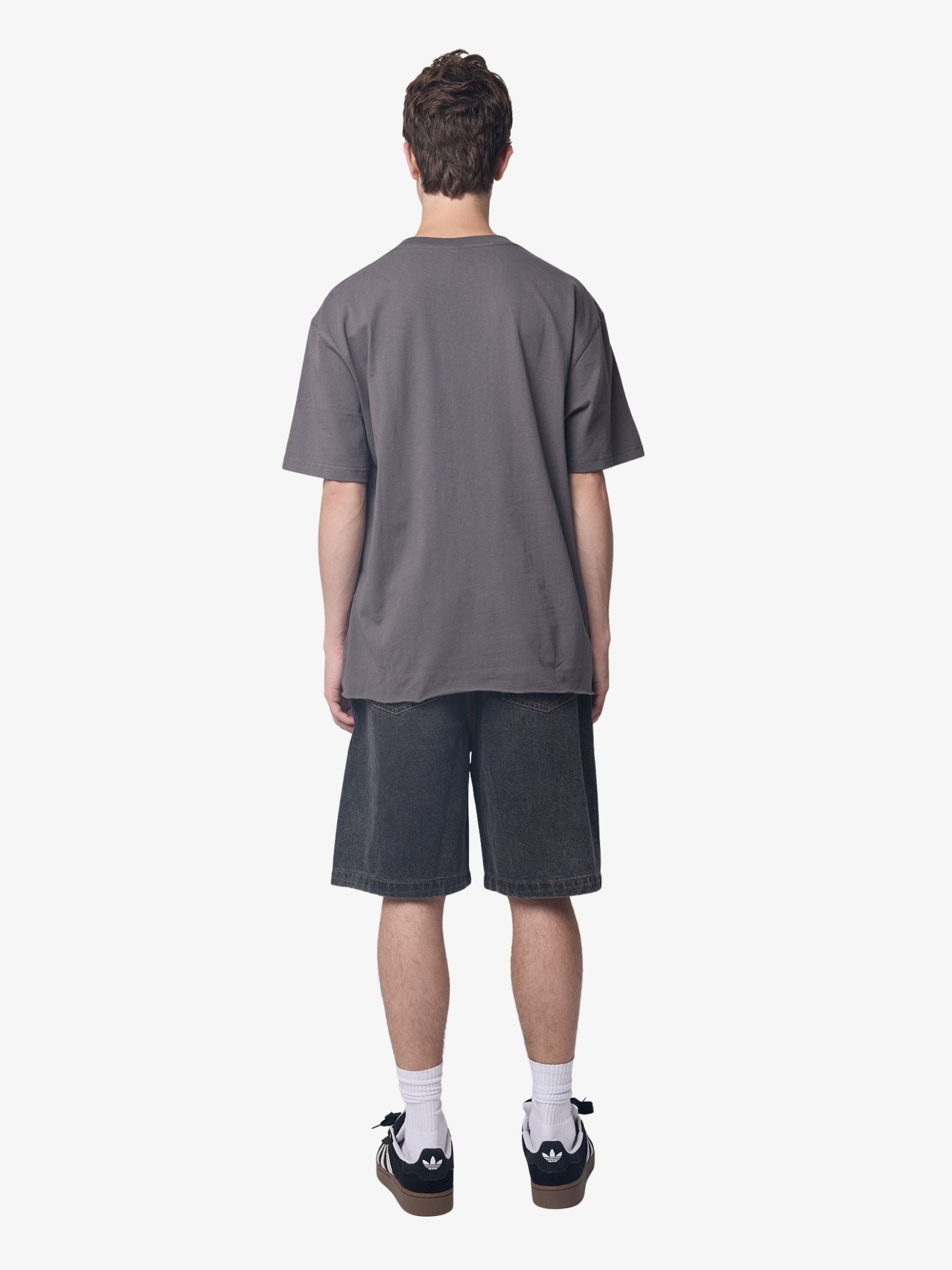 The Whisp Tee by Worship is a comfortable t-shirt featuring an oversized, relaxed fit and a classic crew neckline. It is made from heavyweight organic cotton jersey. The design is centered around a bold, contrasting flame graphic logo on the chest, providing a strong visual statement.