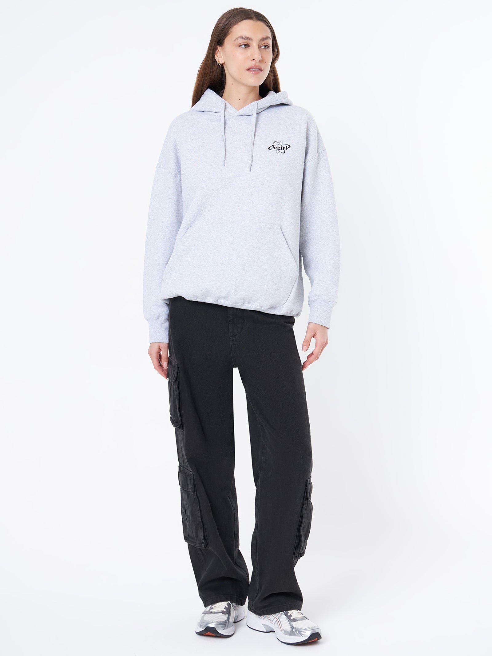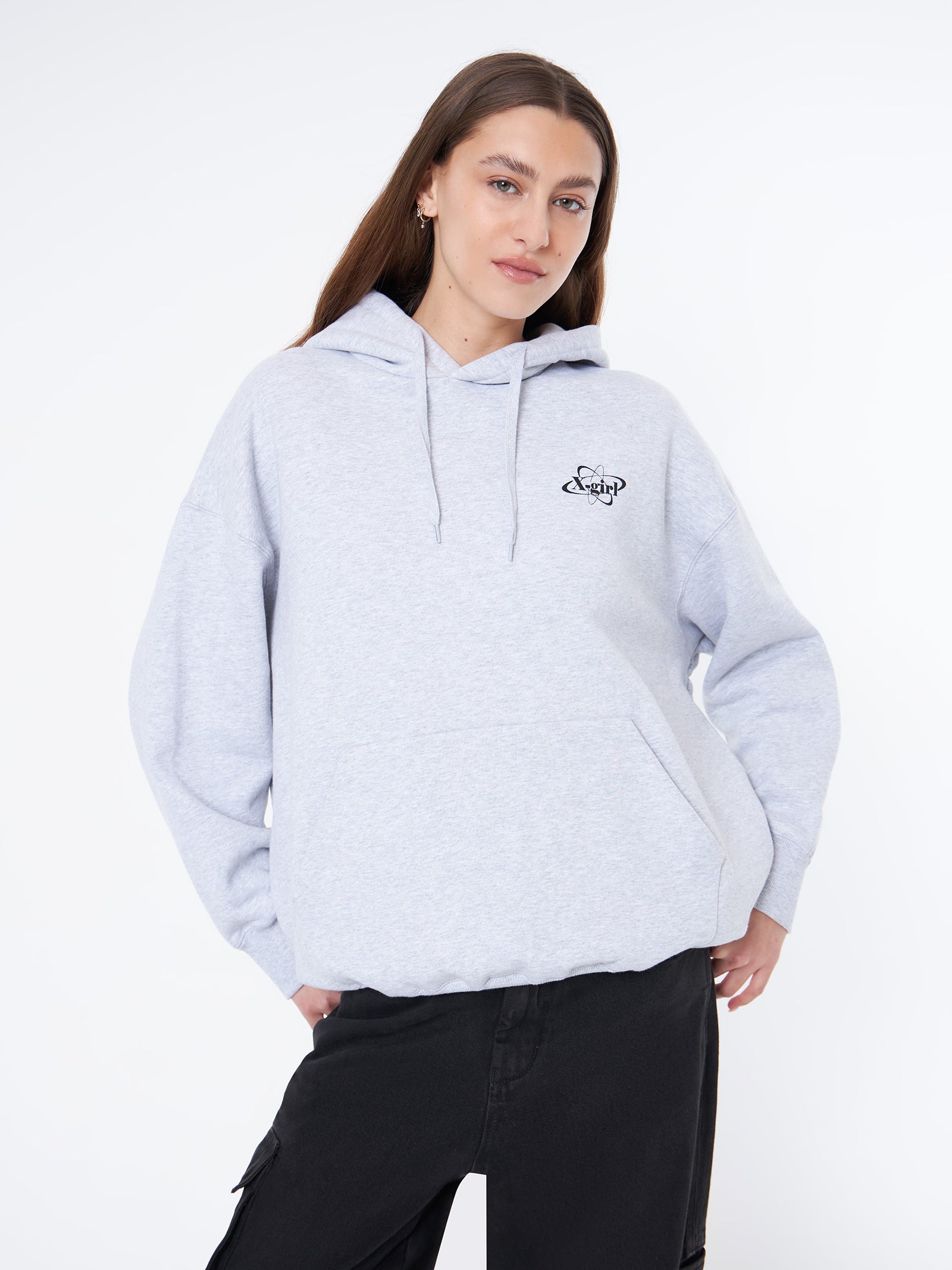 This hoodie features an oversized fit, perfect for layering or achieving a laid-back, relaxed look. The classic kangaroo pocket adds functionality, keeping your hands warm and your essentials close. Finished with the iconic X-Girl chest logo, this hoodie effortlessly blends urban edge with a cosmic twist, making it a standout piece in any wardrobe.