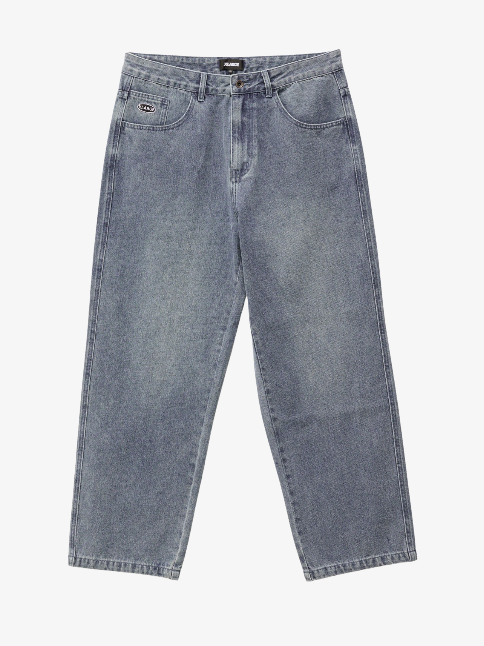 XLARGE is crafted from 100% bull denim cotton. These pants features an extra-wide leg cut, extended rise, and roomy thigh provide a relaxed silhouette.