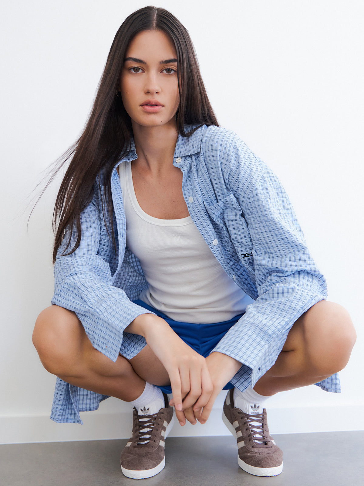 The Plaid Oversized Shirt by Xgirl combines classic plaid with the brand’s signature edgy style. Crafted from 100% cotton, this yarn-dyed shirt is soft, breathable, and perfect for layering. The oversized fit and embroidered front chest pocket add a contemporary twist to the timeless design. Pair it with denim or tailored trousers for an effortlessly cool and versatile look.