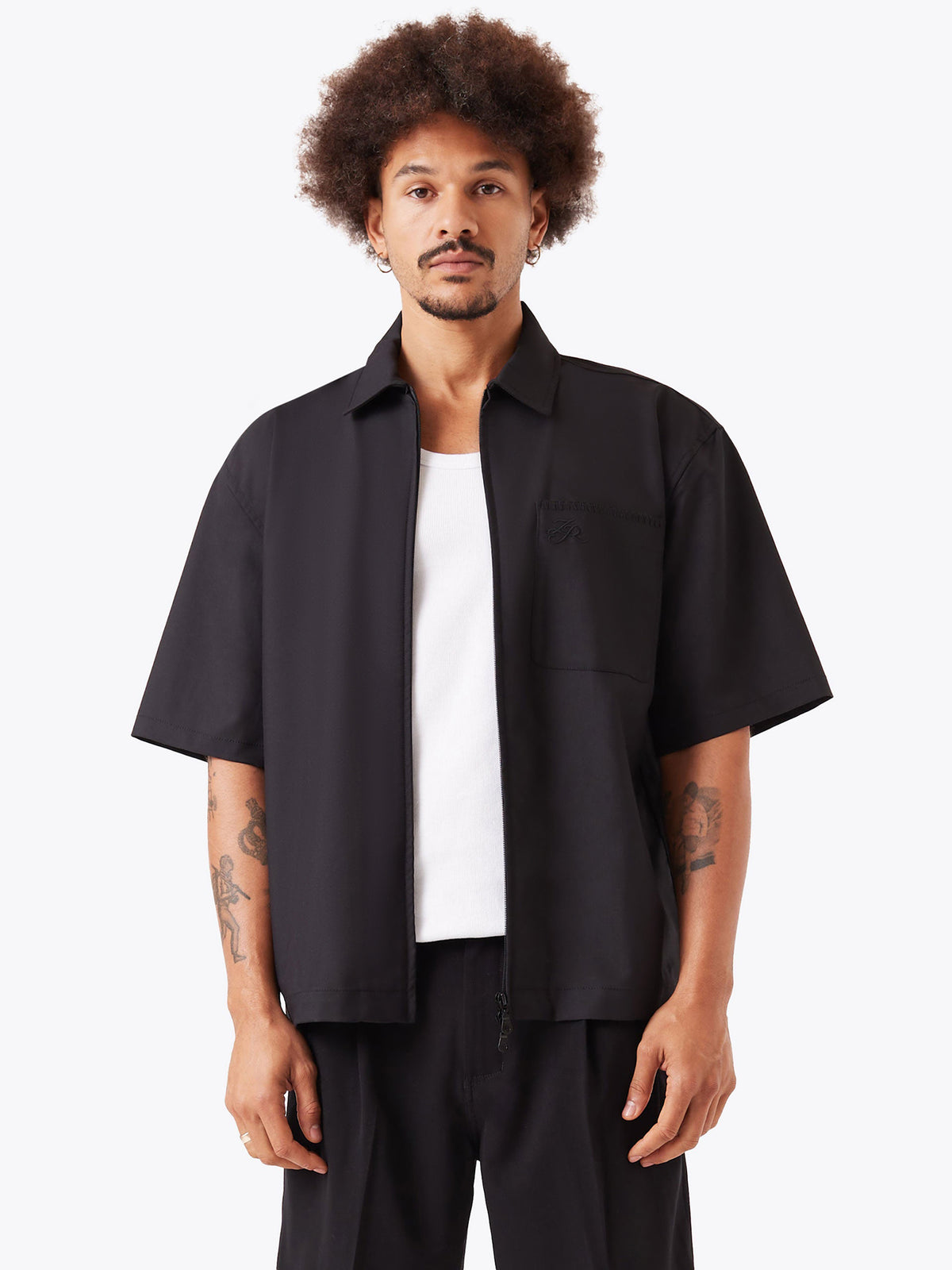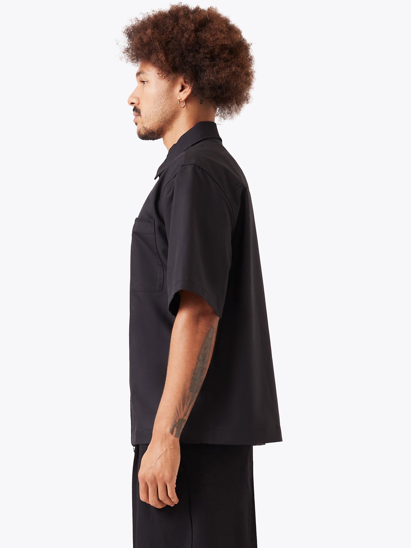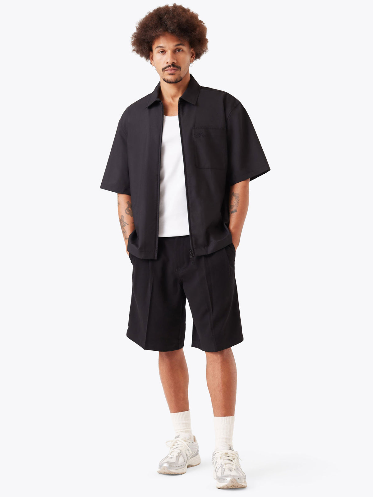 The Boxy SS Overshirt 2.0 in black by Zanerobe is a refined layering essential with a modern, oversized fit. This overshirt features a structured silhouette with a button-up front.