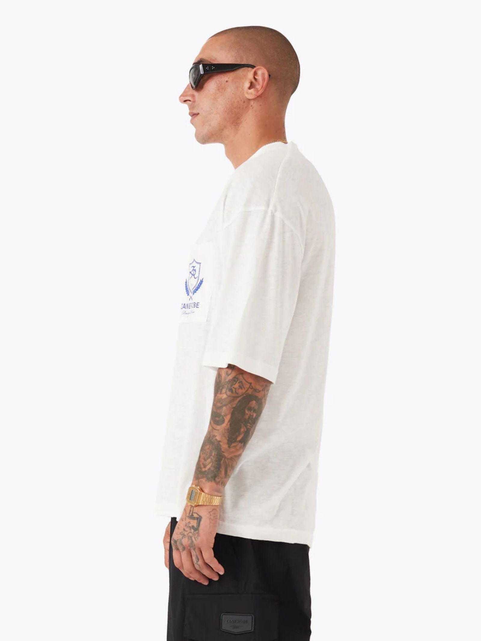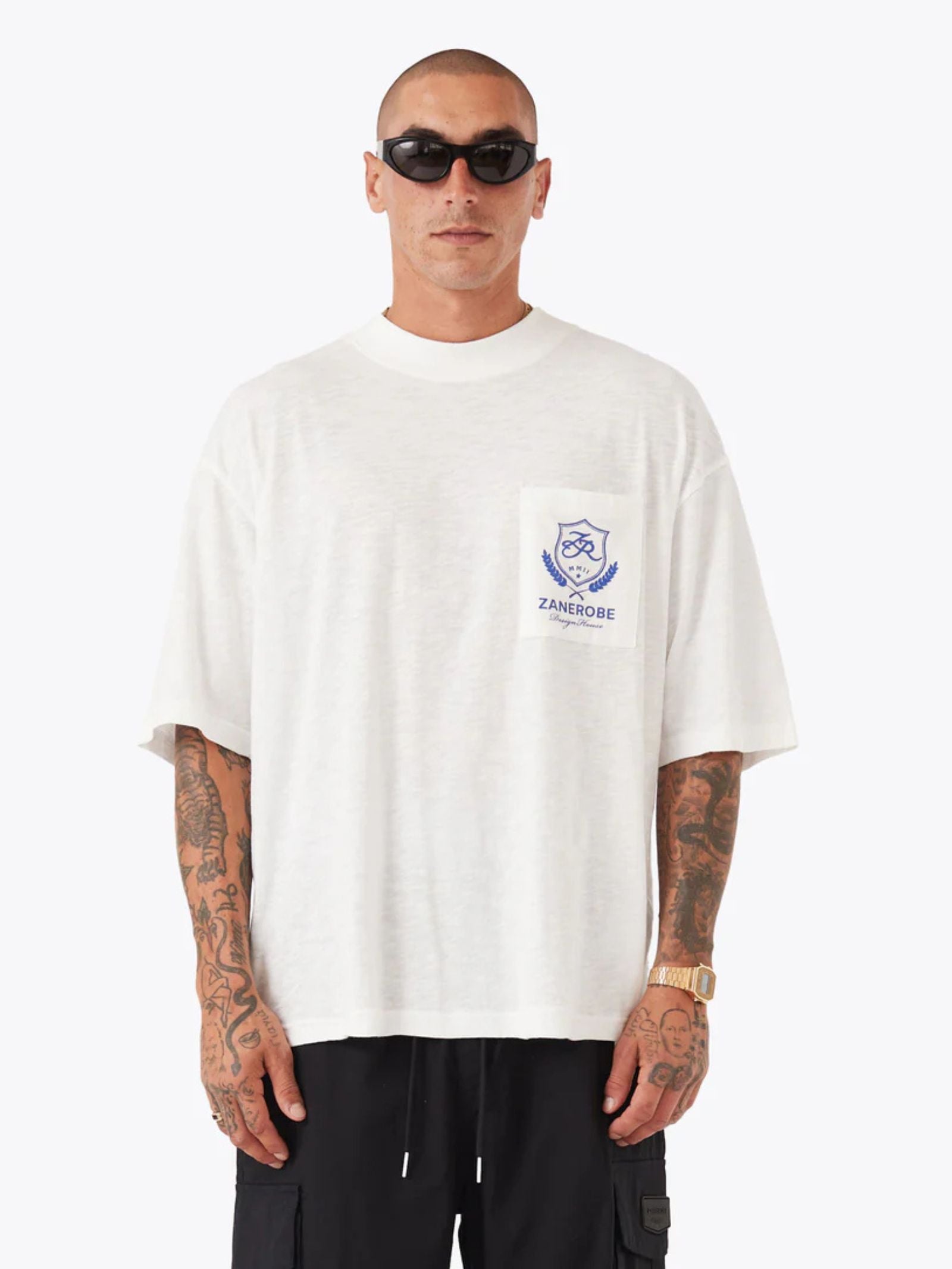 The Crest Slub Flow Tee by Zanerobe offers a relaxed, oversized fit crafted from soft 100% slub cotton for all-day comfort. Designed with a drop shoulder and deep rib neckband, it delivers an easy silhouette with refined details like a patch pocket and signature ‘Crest’ print—making it an elevated everyday essential.