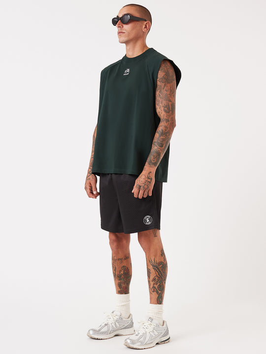 Stay fresh and stylish with the Zanerobe Emblem Muscle in forest green. Featuring a relaxed, sleeveless cut, this piece boasts a bold emblem graphic on the chest for a signature look. Perfect for layering or wearing solo, it’s a versatile addition to your casual wardrobe.