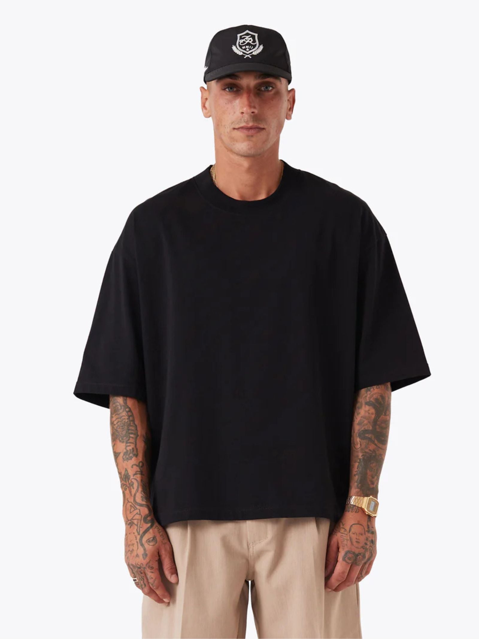The Cropped Flow Tee by Zanerobe redefines casual comfort with its boxy, oversized fit and cropped silhouette. Made from heavyweight 100% cotton jersey, it delivers a structured yet relaxed feel with a drop shoulder and thick ribbed neckband. A clean, elevated essential designed for everyday wear with a modern edge.