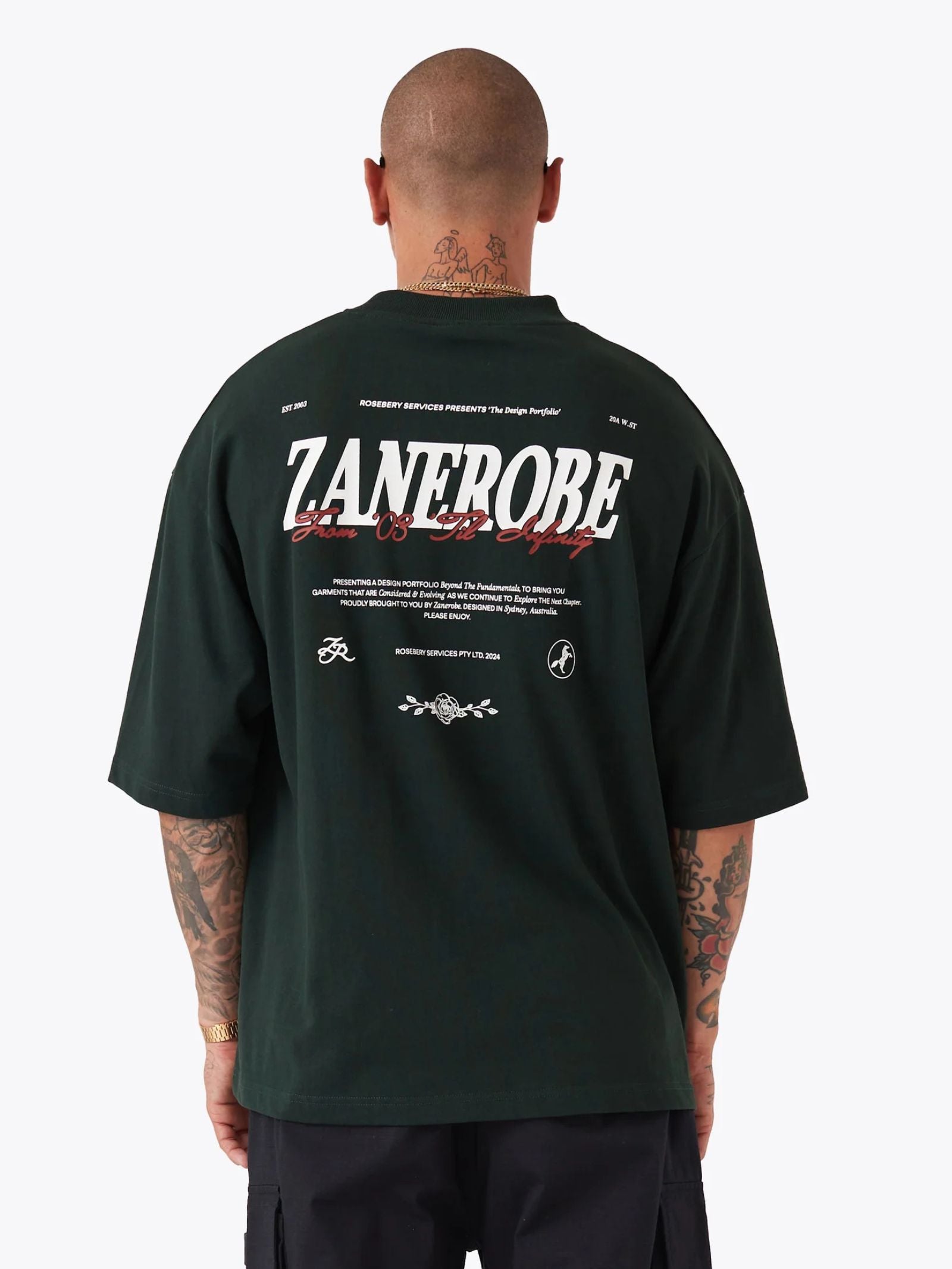 The Portfolio Flow Tee by Zanerobe brings a sport-inspired edge to everyday streetwear. Crafted from heavyweight cotton jersey, it offers a structured feel that holds its shape while staying breathable. Designed with an oversized fit and drop shoulders, it’s finished with bold plastisol graphics on the front and back for a modern athletic look.