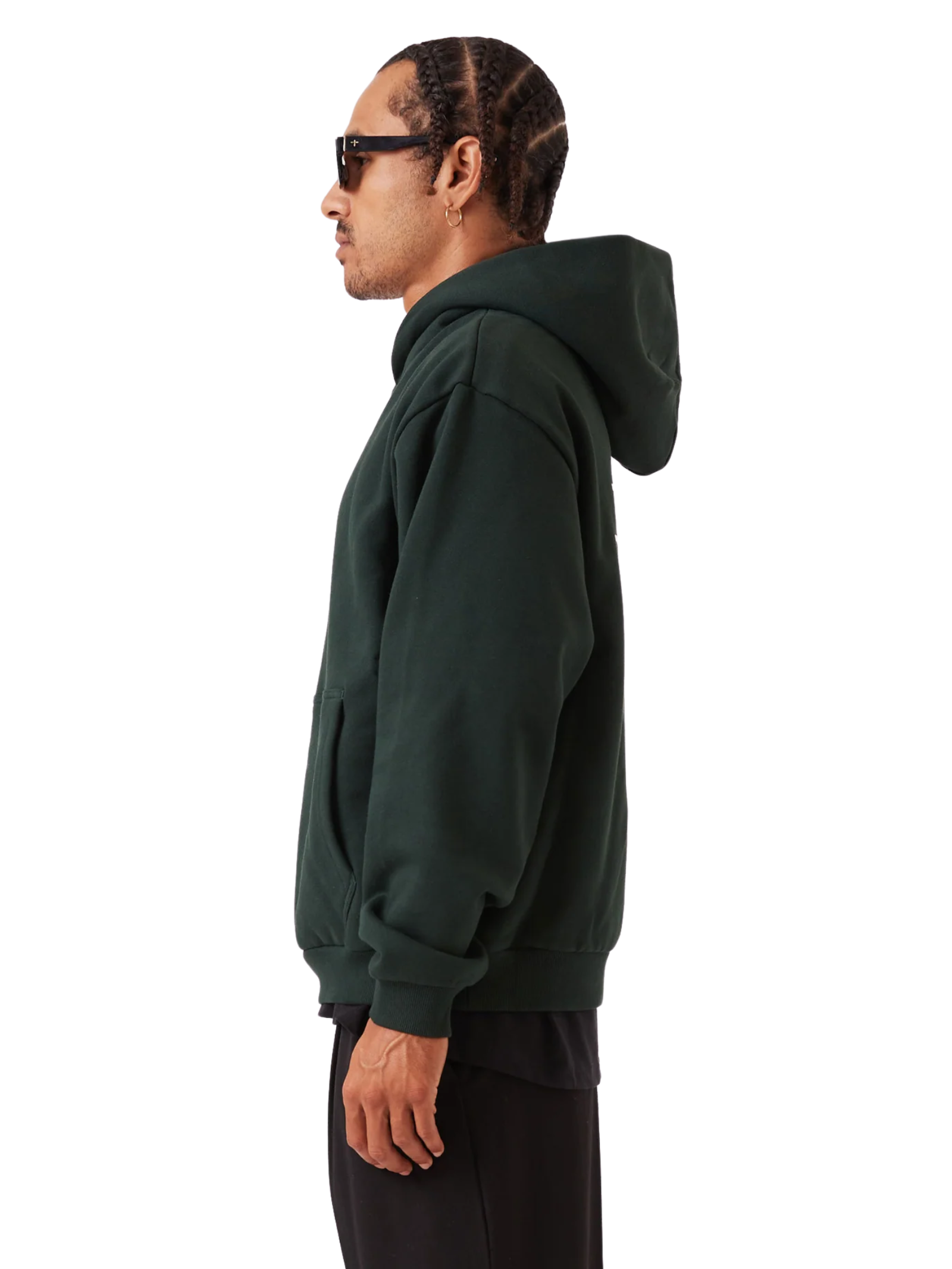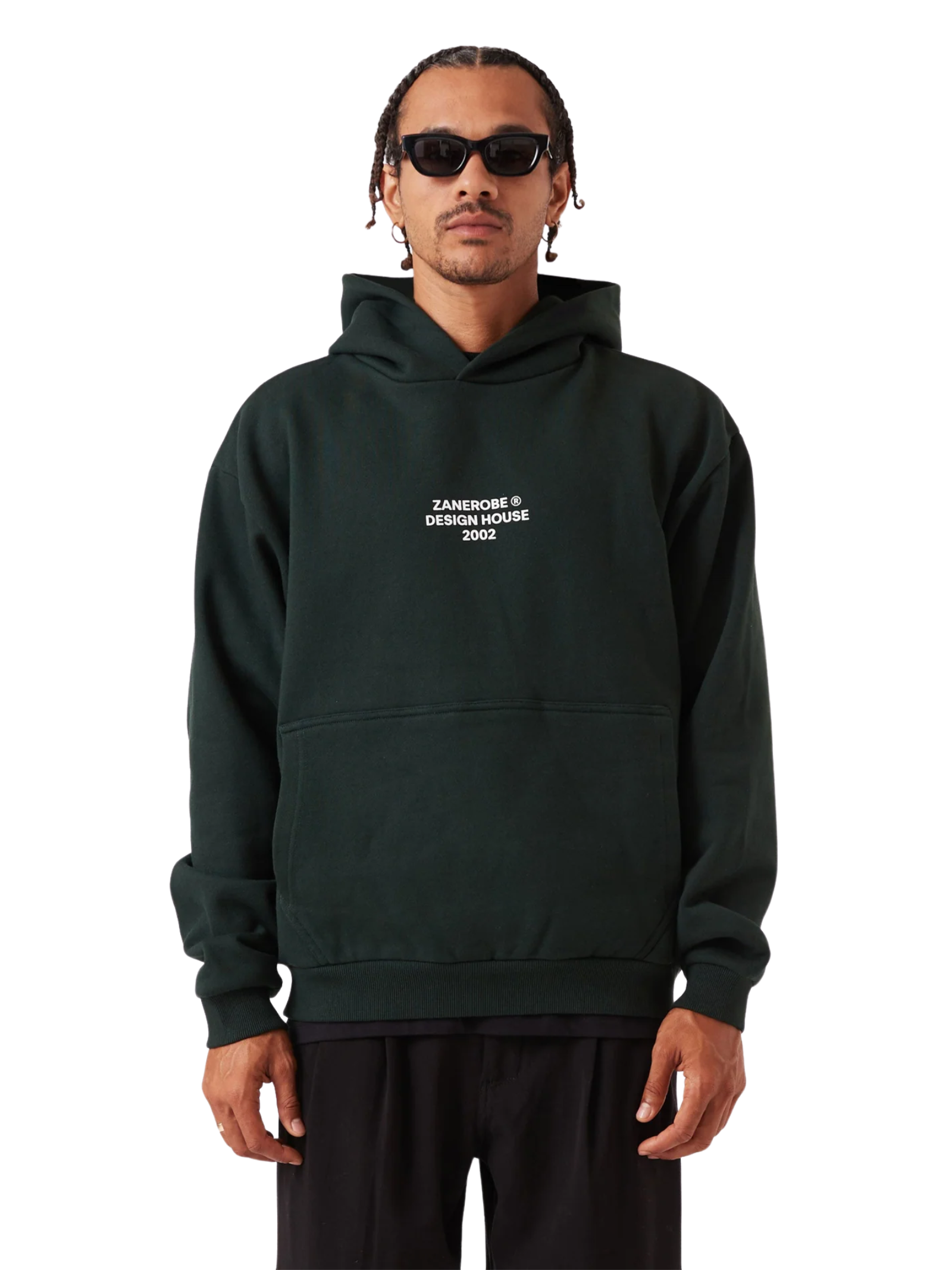 The ZR Design House Box Hood in Forest by Zanerobe is crafted from heavy-weight brushed back fleece. This hoodie features minimalist silhouette, ribbed cuffs and hem.
